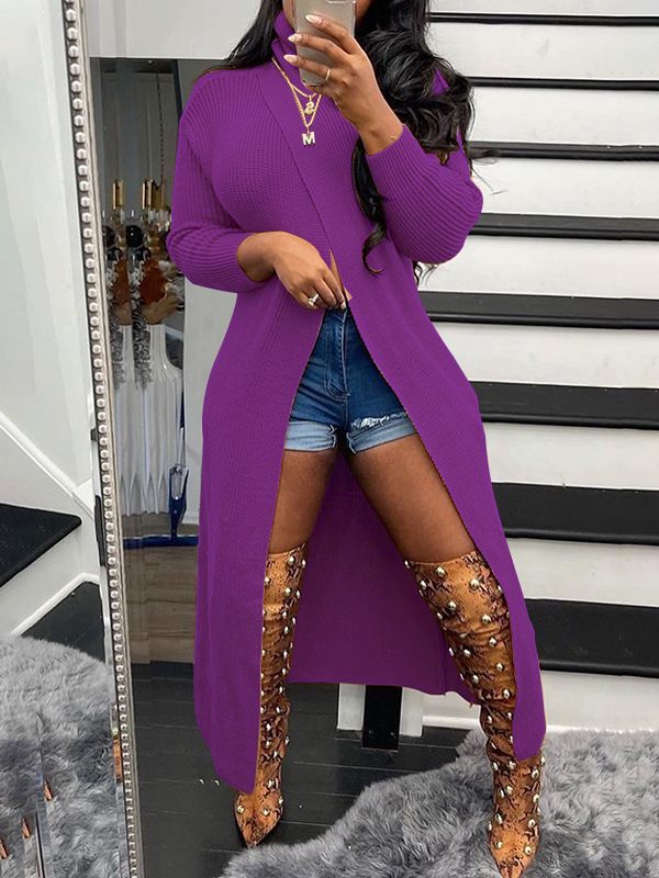 - Turtleneck, Long Sleeves, Slit Front